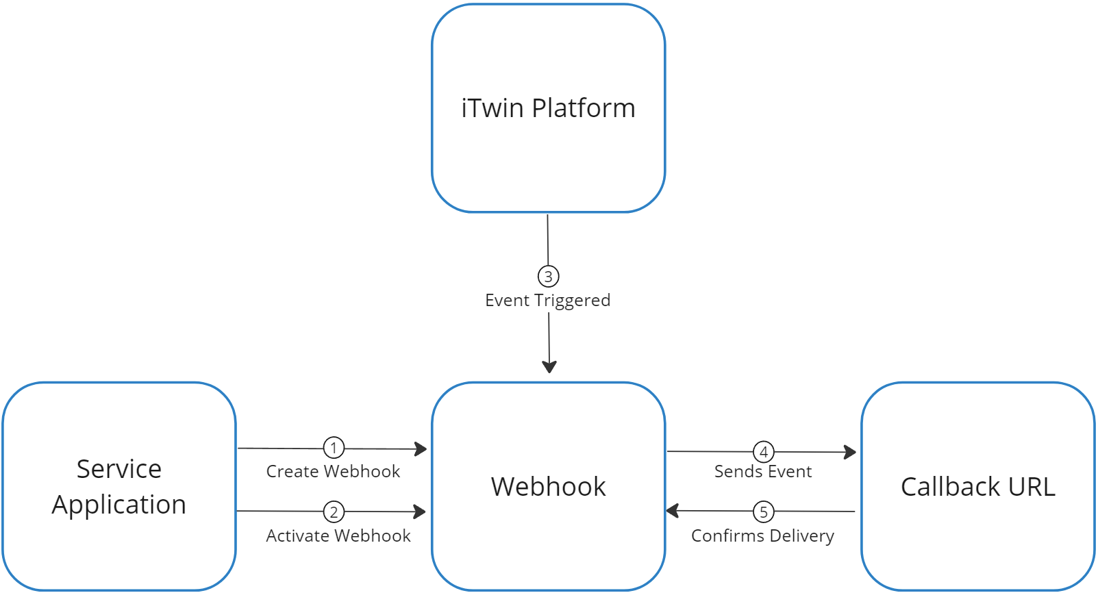 The Webhooks API allows you to subscribe to events happening in iTwin Platform. In simple terms, webhooks (sometimes referred to as “HTTP callbacks”) are a way for applications to communicate with one another. Webhooks are an easy way to automate workflows inside of the iTwin Platform. To use webhooks you need to create a public endpoint in order to receive webhook events. This endpoint will receive requests containing events that have been triggered by different actions throughout the iTwin Platform.