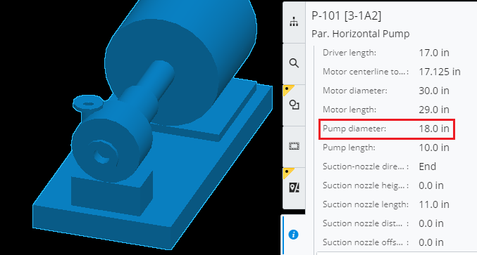This equipment may be displayed in an iModel with a bare-bones Geometric Element, however, business data that relates to it (like the pump diameter in the image above), exists under the properties of a different non-graphical element.