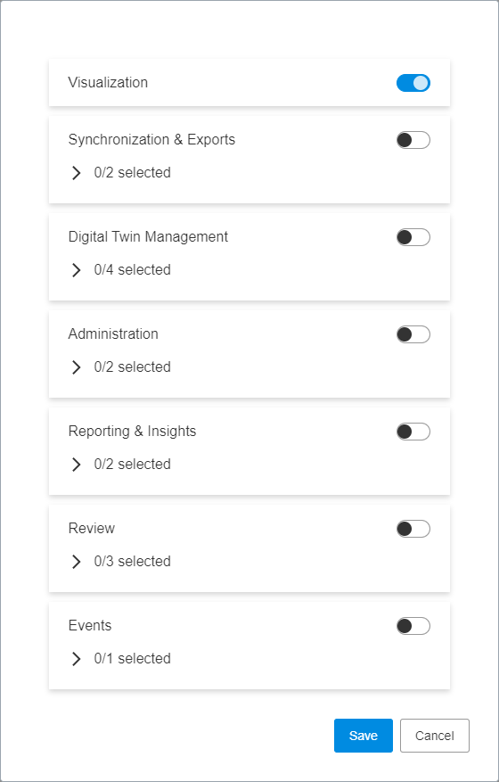 - Some API groups have more than one API. If you want to select single APIs from group - expand the API list and toggle each API separately.