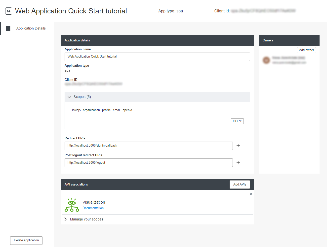 Before you can start using iTwin Platform REST APIs you need to create an application. Registered application gives you an ability to access iTwin Platform REST APIs and manage client accesses (scopes).