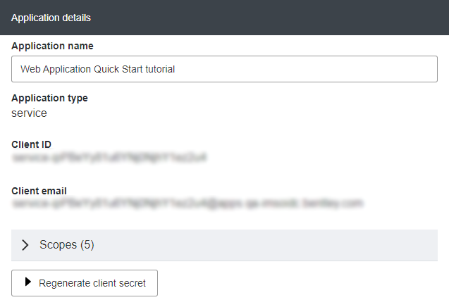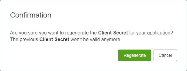 - Regenerate client secret button (only for Service and Web App applications) - a control to regenerate Client Secret if the one given during application registration was missed.