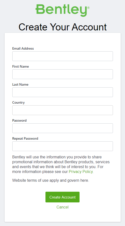 If you don't have a Bentley account yet, you can create one by following these steps: