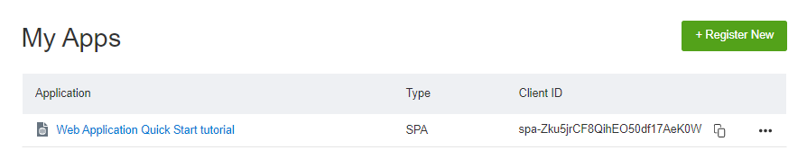 Now that you have registered an application, you can see it in My Apps table on My Apps page. To see all application details: