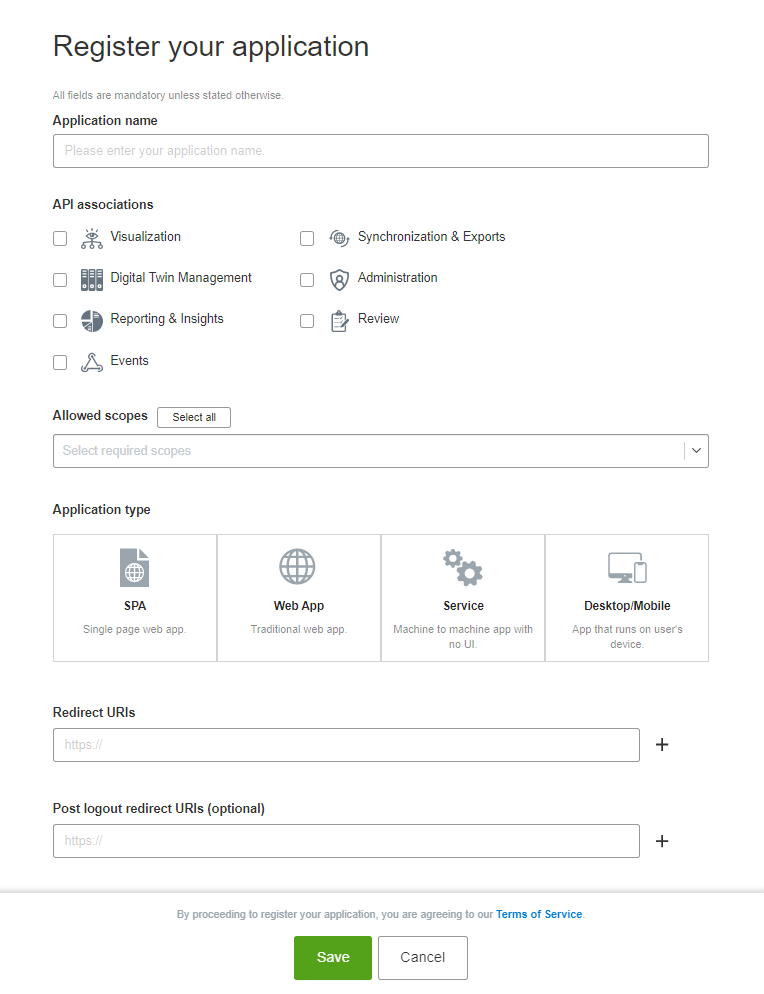 Please review and acknowledge the Terms of Service. By proceeding to register your application, you agree to our Terms of Service