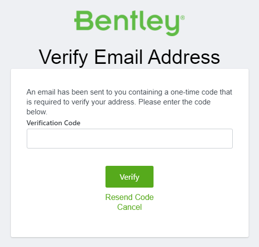no-reply@bentley.comto address you entered in registration form with Verification Code - Click Verify
