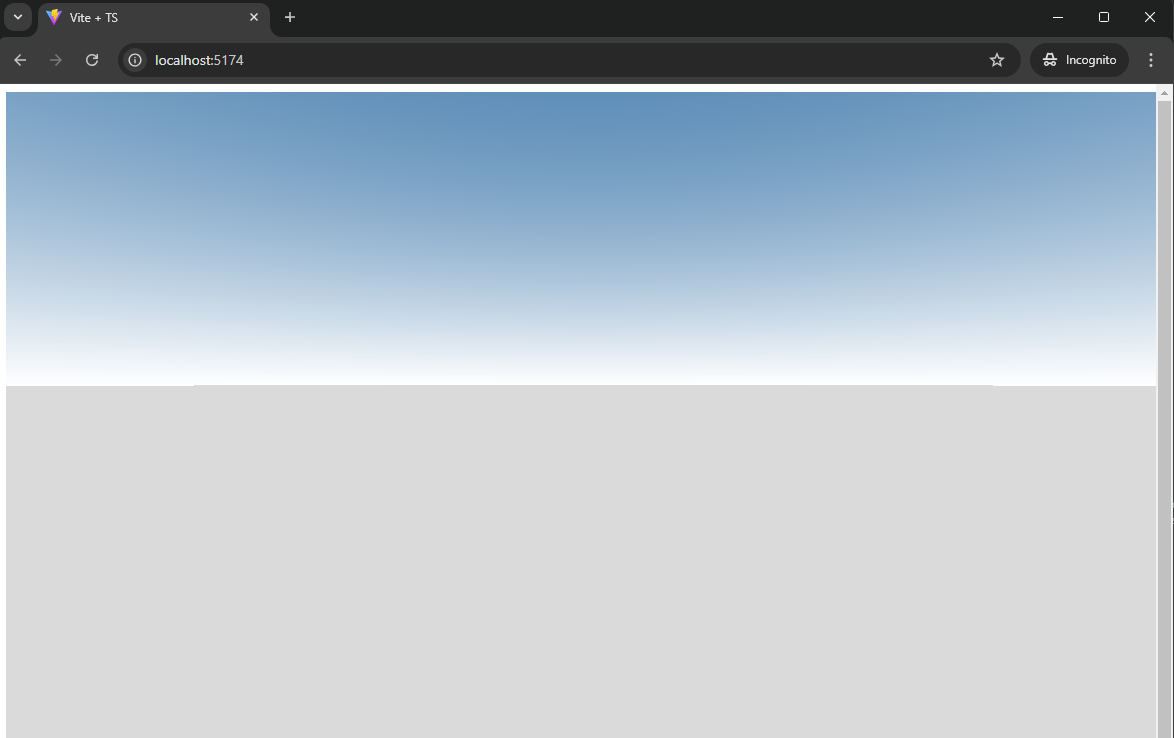 Additionally, now that you have some actual three.js code, you can safely delete some of the files that were created when you ran the vite create command for your project template. Delete counter.ts and typescript.svg from your src/ directory. At this point it should only contain main.ts, sky.ts, style.css, and vite-env.d.ts.