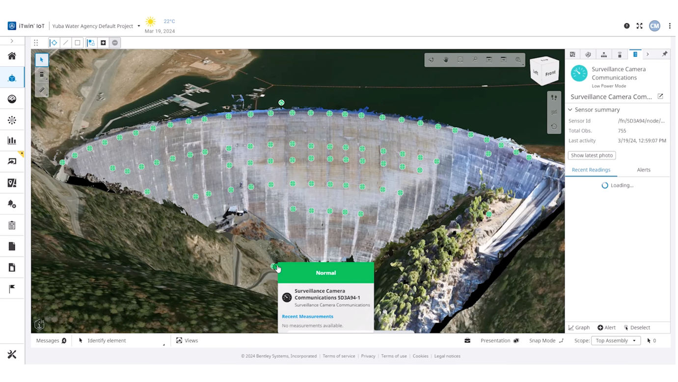 Analyzing data from IoT sensors within the iTwin Platform reveals patterns and anomalies that help predict when an asset may fail. This proactive approach allows teams to perform maintenance based on data insights rather than waiting for an issue to occur, reducing downtime, ensuring safety, and extending the asset's life cycle.