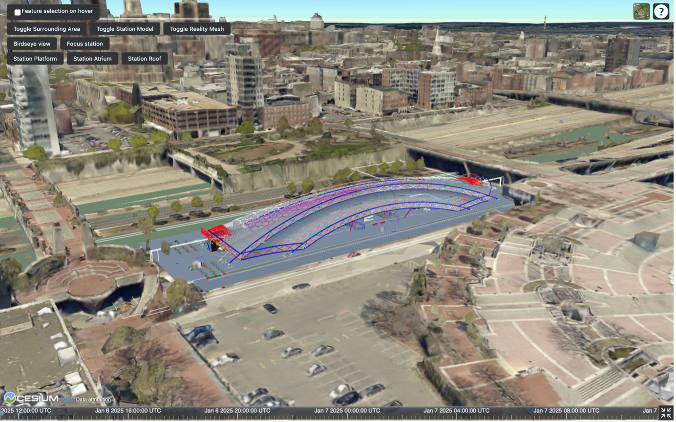 Connecting iTwin data with Cesium.js enables advanced 3D visualization with real-time geospatial rendering. While iTwin.js offers a powerful library for developing applications that leverage iTwin data, Cesium.js excels in large-scale web visualizations, providing stakeholders with high-performance rendering and rich geospatial context.